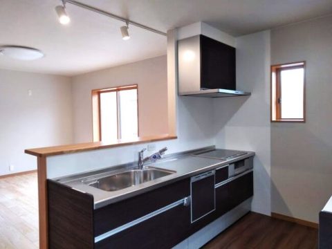 キッチンは、対面か壁付けにするのか、そして水栓や床の素材等すべてにこだわりました。家事動線を何度も話し合って決めれたので、使いやすいキッチンになりました。憧れだった造り付けの洗面所は細部まで要望を聞いてもらって大満足です。