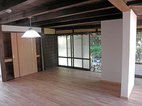 After知人の紹介でお願いしたが、想像以上によいできあがりです。 家の傾きや土台の腐りなども直してもらったので安心して暮らせます。 暗かった和室は、フローリングや収納など至る所に無垢の木を贅沢に使ってもらって、リッチな気分です。 廊下と部屋の段差もなくなり、開放感があってすっきりした部屋になりました。 床の間をクロークにしてもらったり、押入れに中段をつけて使い勝手を良くしてもらえたのが良かったです。 朝日が入ってきて気持ちの良いリビングになりました!